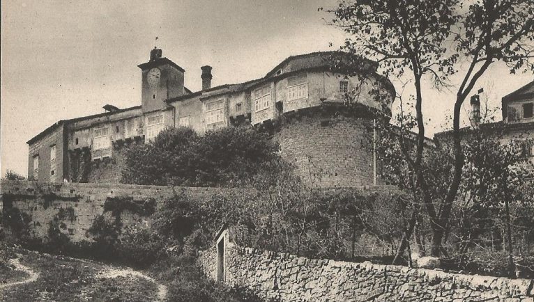 Obilazak grada započinjemo posjetom crkvi čiji visoki lijepo oblikovani zvonik zapažamo iz daljine. Potom, zaputivši se uskim uličicama, izlazimo na trg, neku vrstu terase ograđene niskim zidićem. Na jednoj se strani uzdiže stara nazubljena kula osebujnog karaktera, s galerijama za bacanje kamenja, rešetkama, katapultima, kompletnom silovitom srednjovjekovnom obranom, vratima sa šiljcima i visećim mostom.